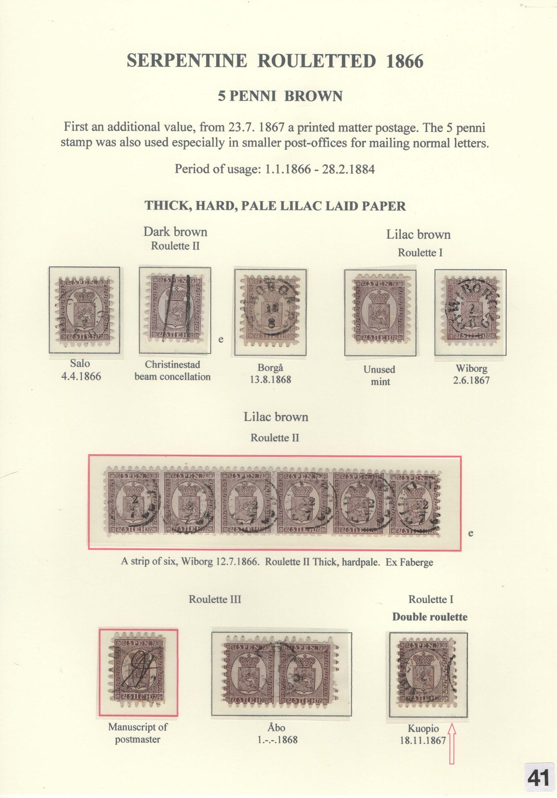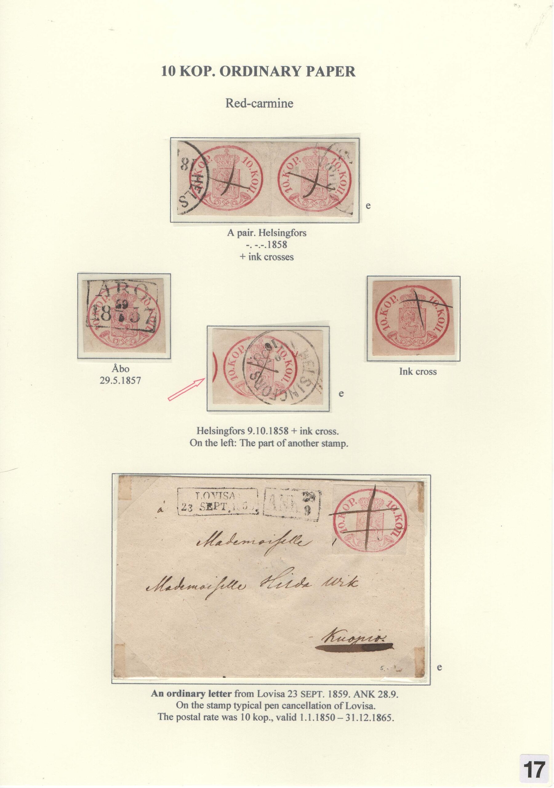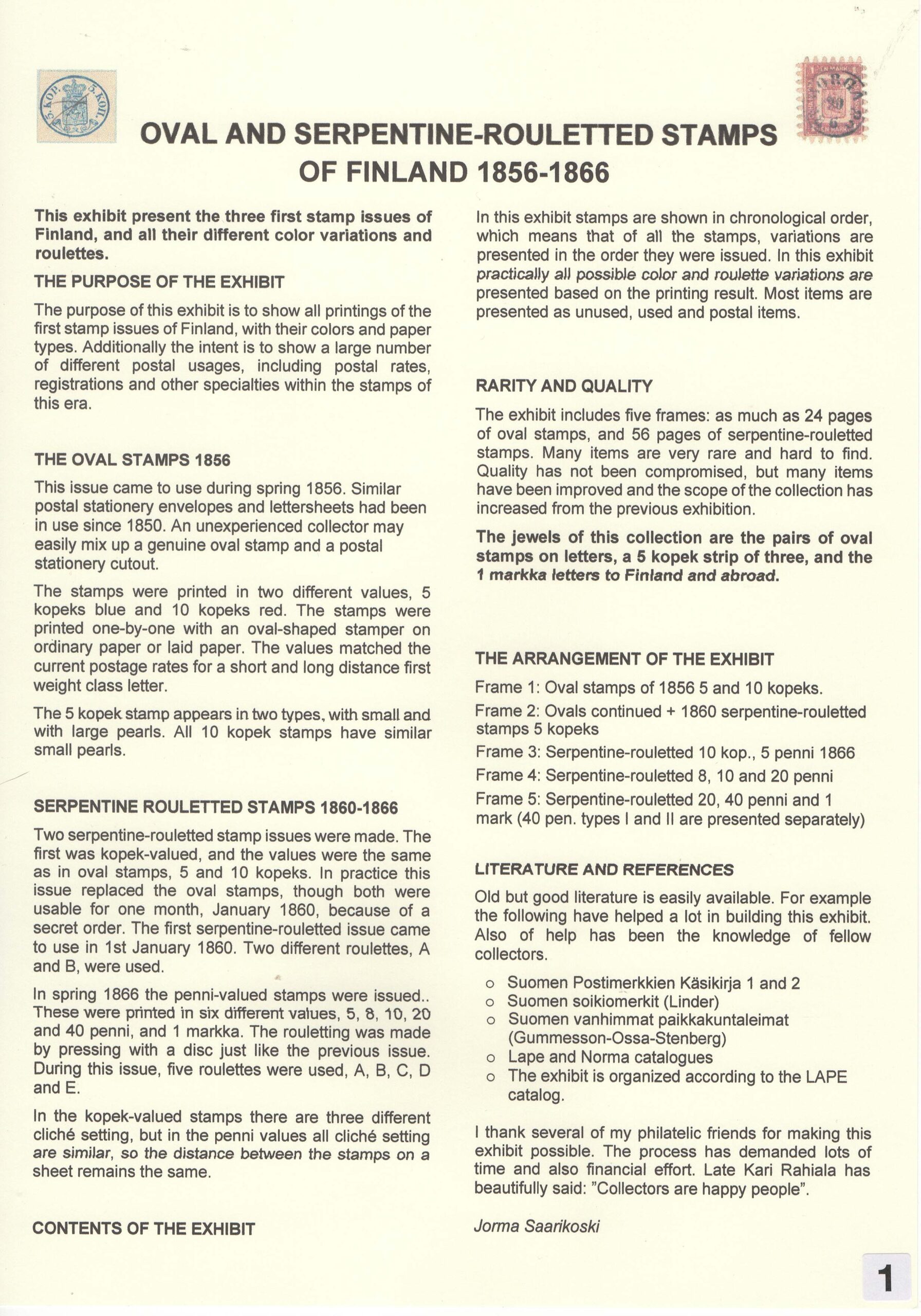 Saarikoski Jorma: Oval and serpentine-rouletted stamps of Finland 1856-1866