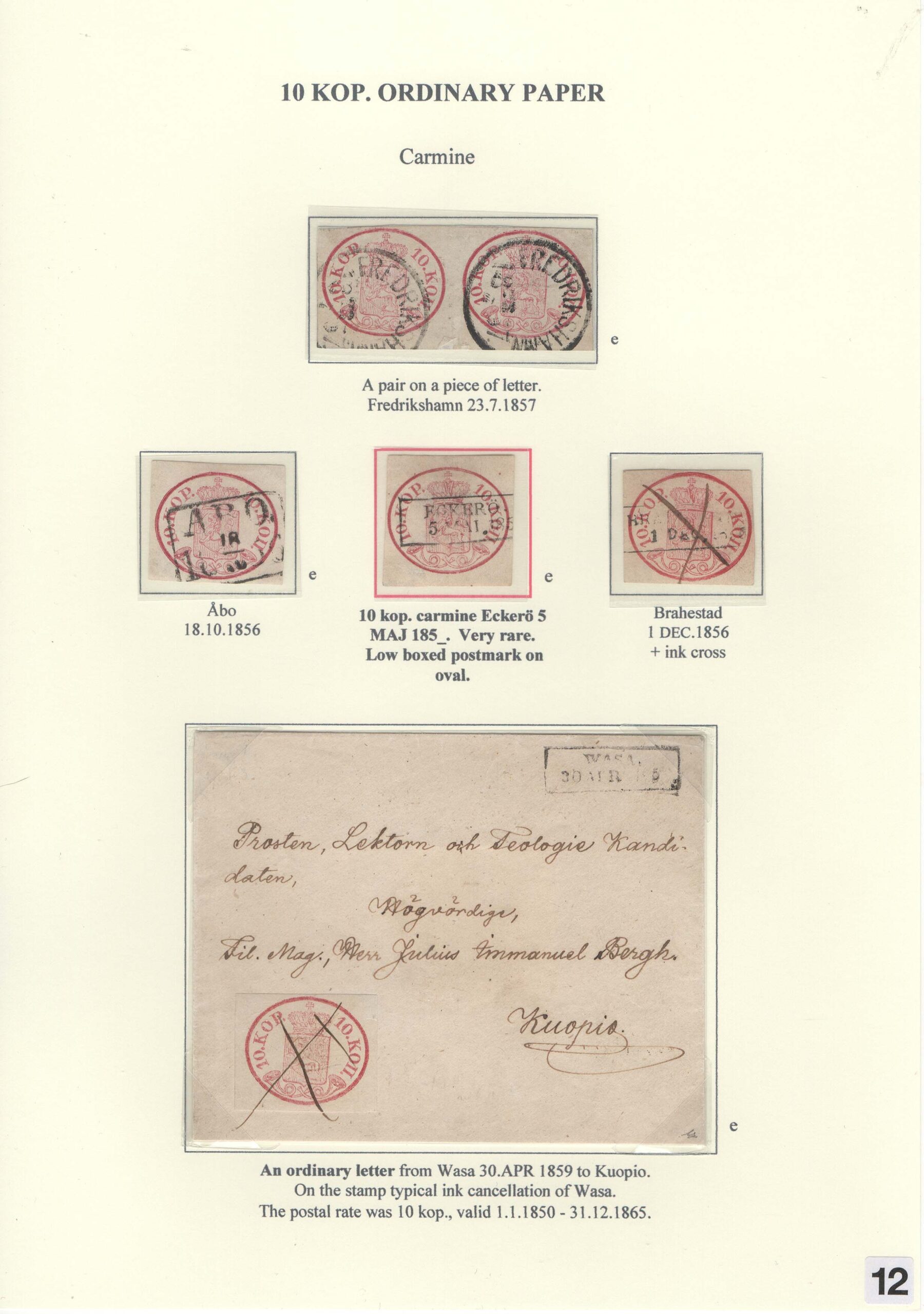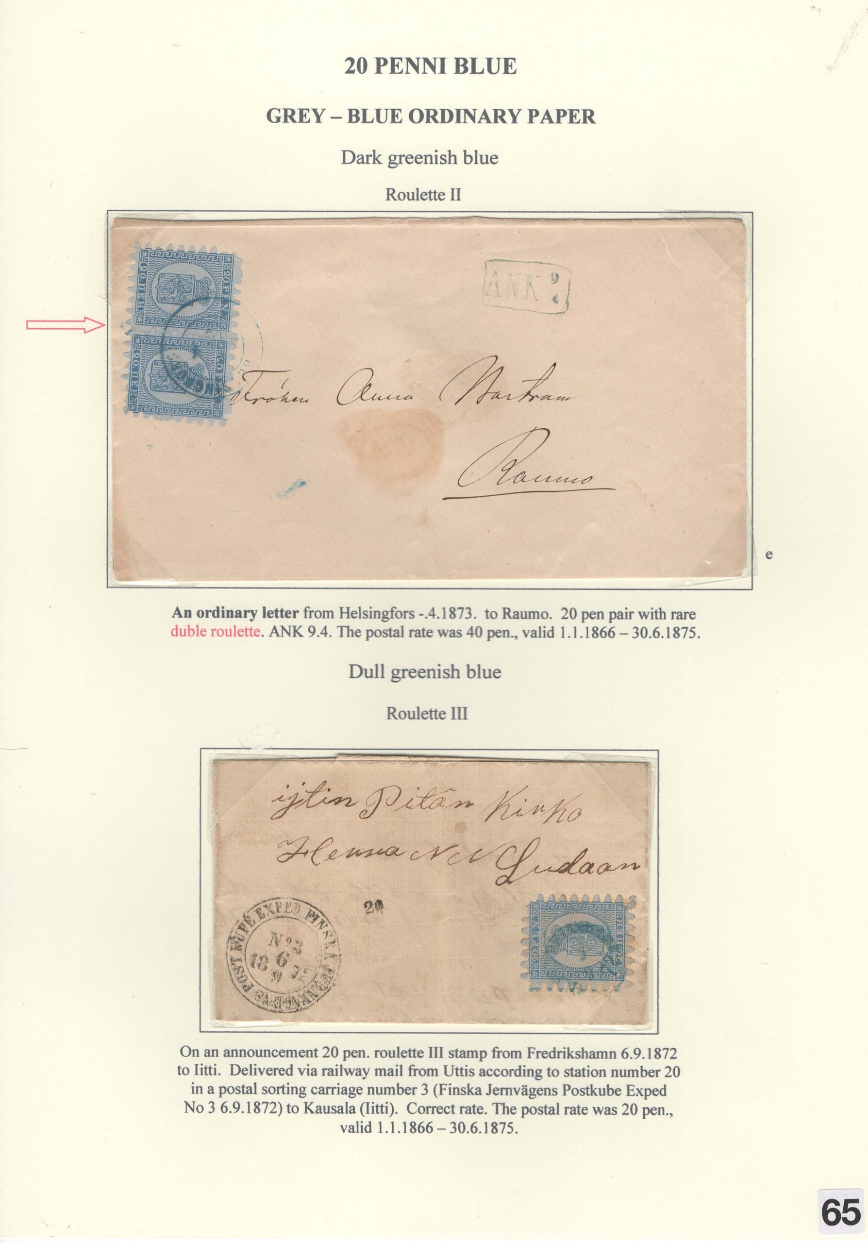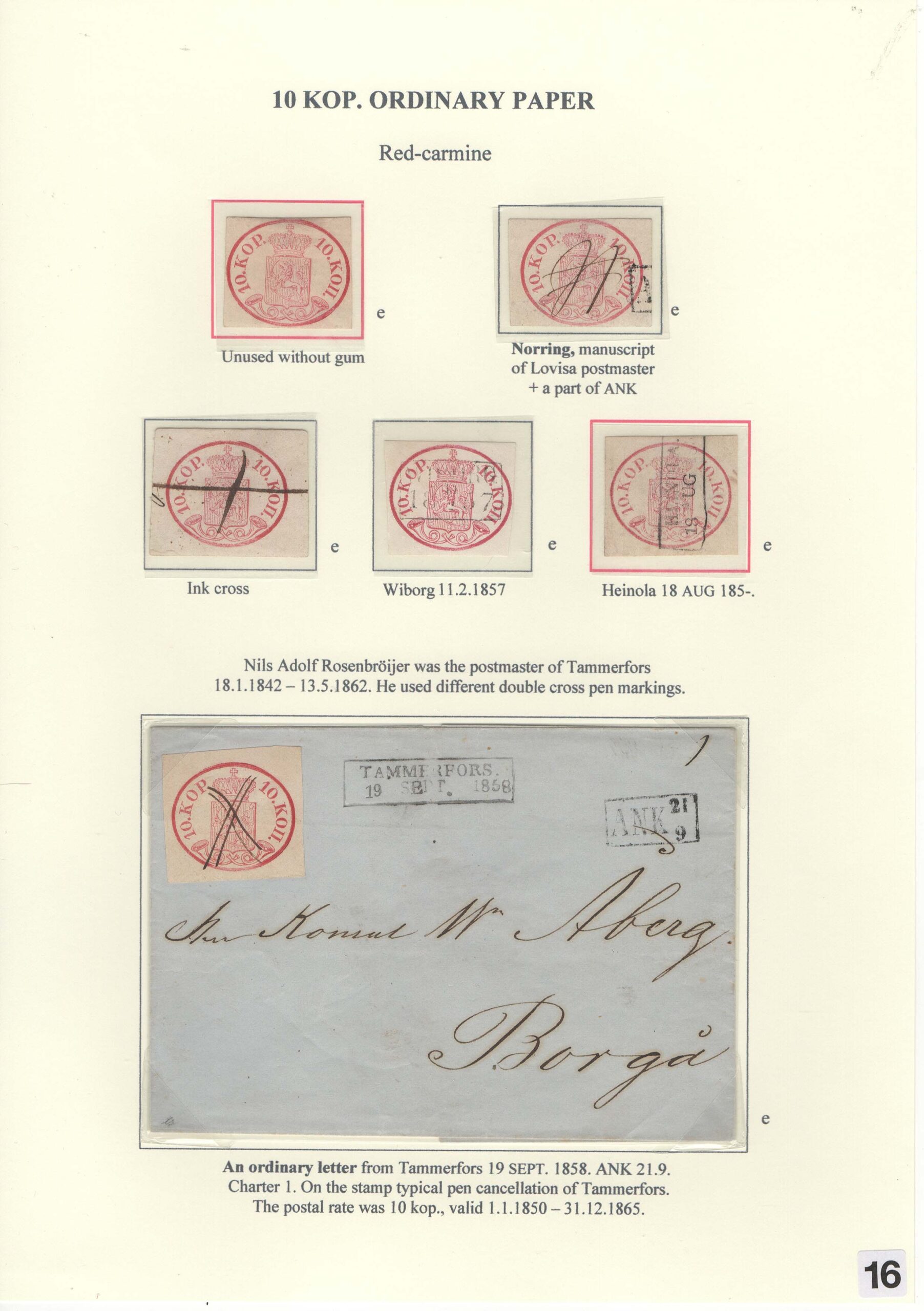 Saarikoski Jorma: Oval and serpentine-rouletted stamps of Finland 1856-1866